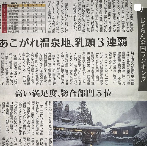 乳頭温泉郷が3連覇!